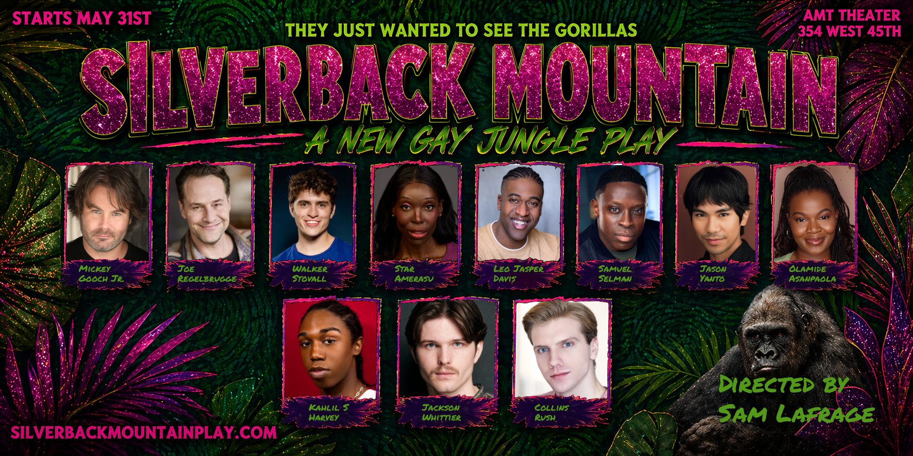 NEW YORK, NY: Thursday, April 23, 2026 b— Star Amerasu joins the cast of Mickey Gooch, Jr’s Silverback Mountain, directed by Slam Frank's Sam LaFrage, with musical direction by Jaz Koft, choreography by Nico DeJesus, and music arrangements and copyist work by Bryan Blaskie, a twisted comic adventure about love, identity, and survival, set against the absurd collision of gay culture and anti-gay persecution. SILVERBACK MOUNTAIN will play a three-week limited engagement at Off-Broadway’s Theatre AMT Theater (354 West 45th Street, New York, NY 10036). Performances begin Sunday, May 31, and continue through Sunday, June 21. Opening Night is Friday, June 5 (8 p.m.). Tickets are $25-$85 and available at www.SilverBackMountainPlay.com.
