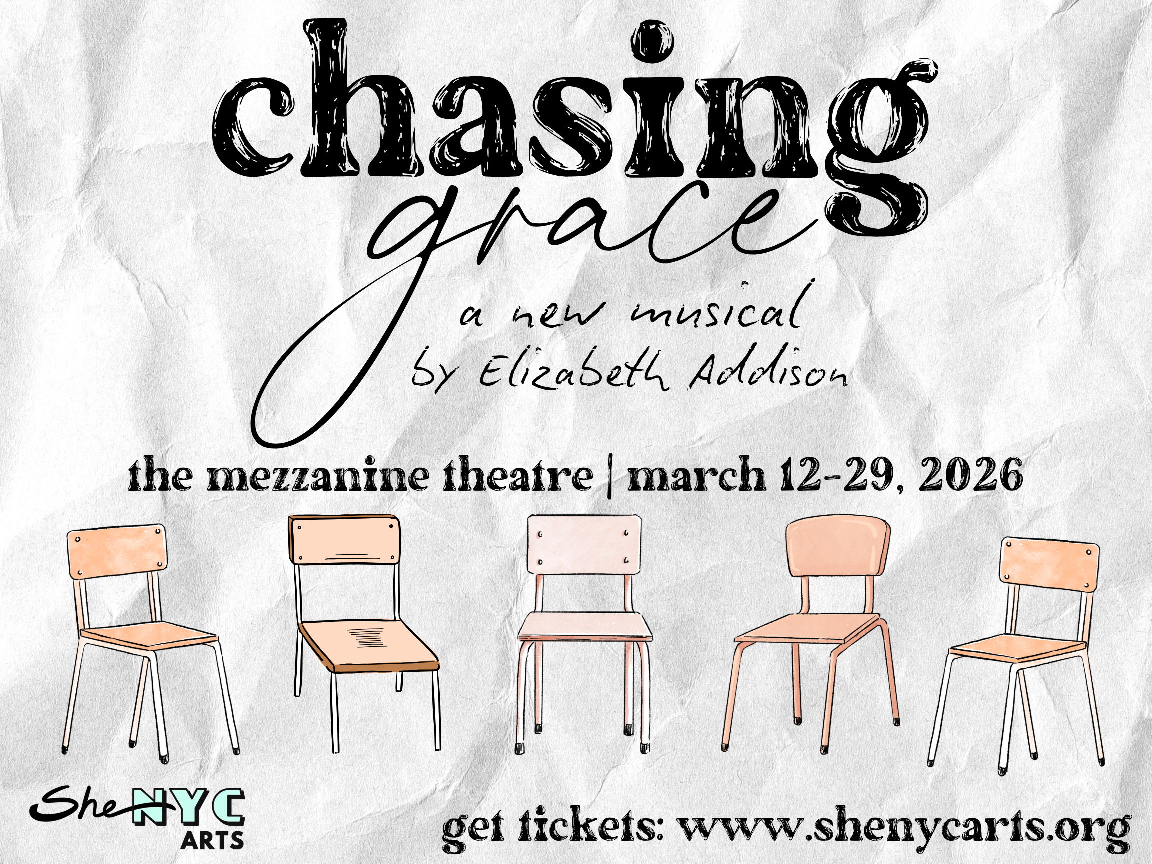 NEW YORK, NY - January 6, 2026: SheNYC ARTS is pleased to announce the World Premiere of Elizabeth Addison’s compelling and highly relevant new musical, CHASING GRACE, which will play a three-week limited engagement at Off Broadway’s ART/NY Mezzanine Theatre (502 W 53rd St, New York, NY 10019). Performances begin Thursday, March 12th, 2026, and continue through Sunday, March 29th. Opening Night is Saturday, March 14th, 2026 (7:30 pm). Tickets begin at $35 and are available at http://www.shenycarts.org/ChasingGrace